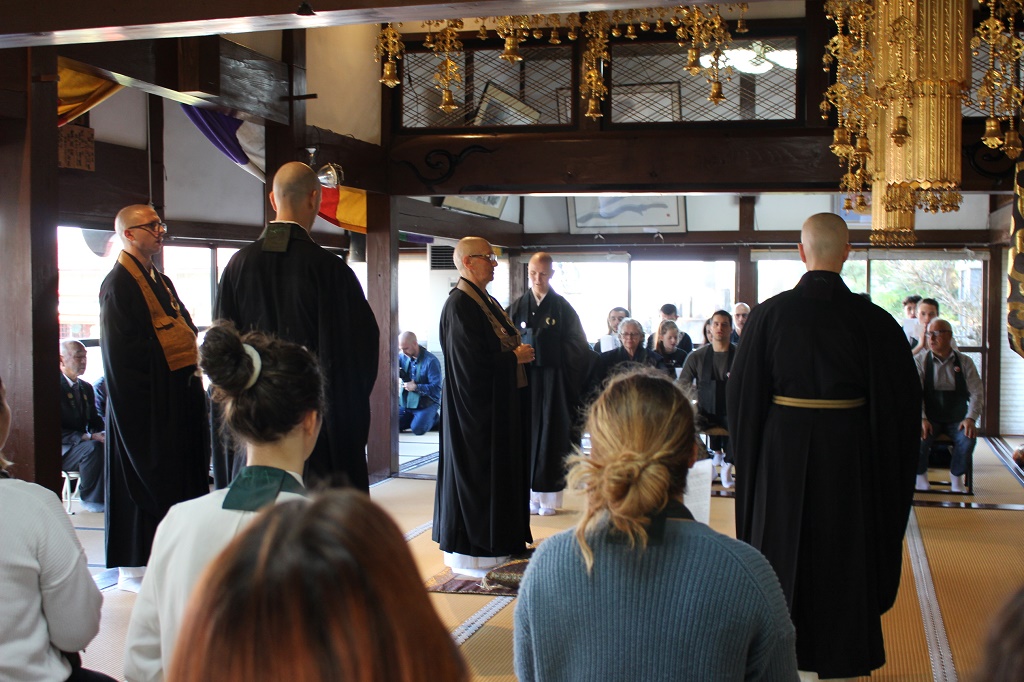 普伝寺住職のアニョーリ妙光老師が導師を勤め、御本尊様への拝登諷経が行われました。般若心経を読経しましたが、多くの方が暗記しており、驚きました。