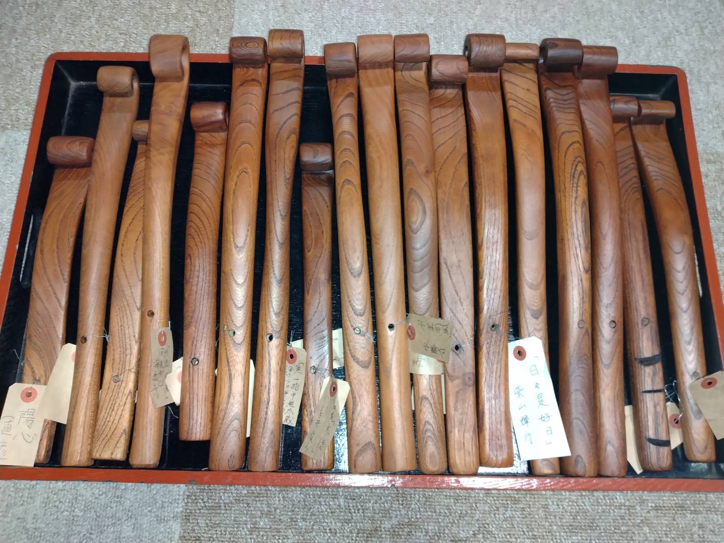 珠洲市千光寺様からいただいてきた、折れたケヤキの柱や梁を元に、昨年は永隣寺にて「笏」という法具を大勢の僧侶で作りました。