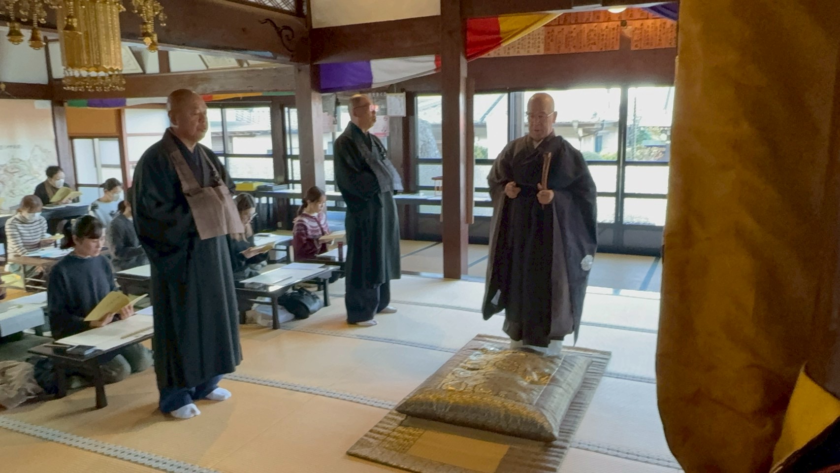 この画像をクリックすると練習後の実際の大般若法要の動画が観られます。