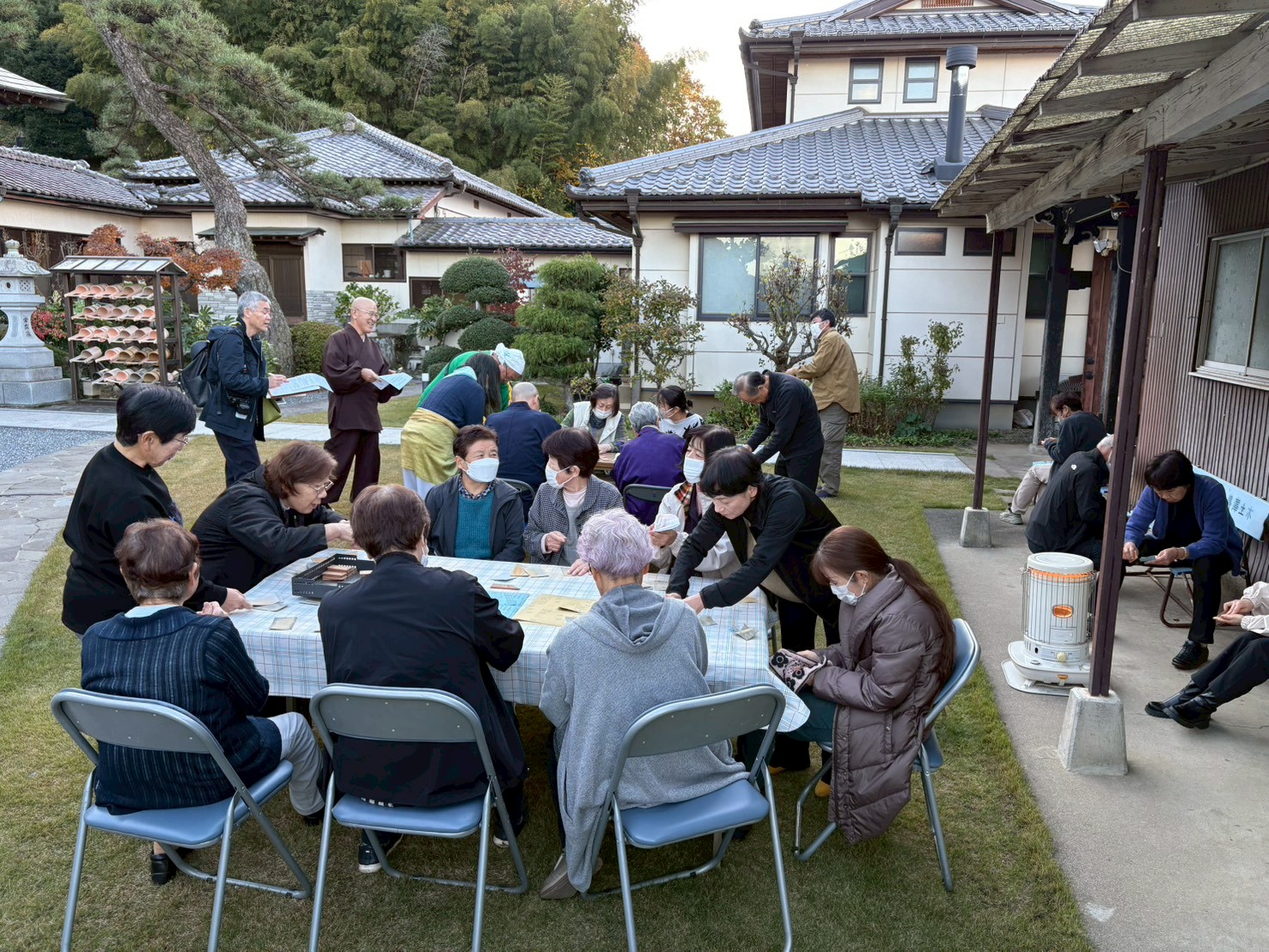 当日は、黛政美会長、大手治之副会長、坐禅会の橫尾光子さん、黛三枝子さん、黛初江さんが参加してくださり、昼食場所の設営や配膳等をお手伝いしていただきました。