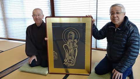 「ふれあい写仏の会」を主宰する細谷義昭先生が、「出山釈迦図」を奉納してくださいました。お釈迦様が悟りを開かれた12月8日の「成道会(じょうどうえ)」に合わせて坐禅会を行いましたが、その際にこの仏画のお披露目をし、「成道会」の法要を行いました。